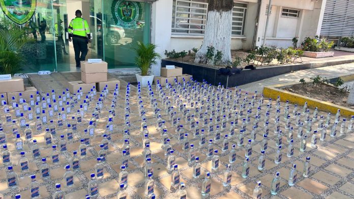 La Gobernación del Atlántico y la Policía de Tránsito dieron un fuerte golpe al contrabando en el departamento con la incautación de 300 botellas de licor adulterado.