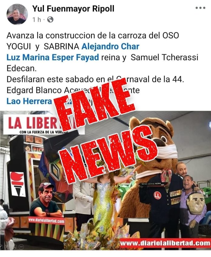 Diario La Libertad, el conglomerado de Medios La Libertad y su Directora Luz Marina Espera Fayad, rechaza de manera categórica la información que circula sobre la creación de una carroza que desfilará por la carrera 44 alusiva al ‘Oso Yogui’. Esta aseveración es totalmente falsa.