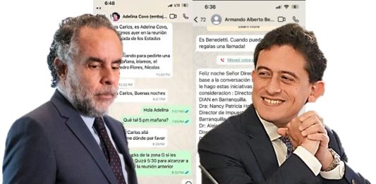 Luis Carlos Reyes, exministro de Comercio, Industria y Turismo, y exdirector de la DIAN, generó una nueva controversia política este domingo al compartir una captura de pantalla de su chat de WhatsApp con el actual ministro del Interior, Armando Benedetti. En el mensaje, Benedetti aparentemente recomienda a varias personas para ocupar altos cargos en la … Sigue leyendo Controversia por mensajes de WhatsApp entre Luis Carlos Reyes y Armando Benedetti sobre recomendaciones para cargos en la DIAN