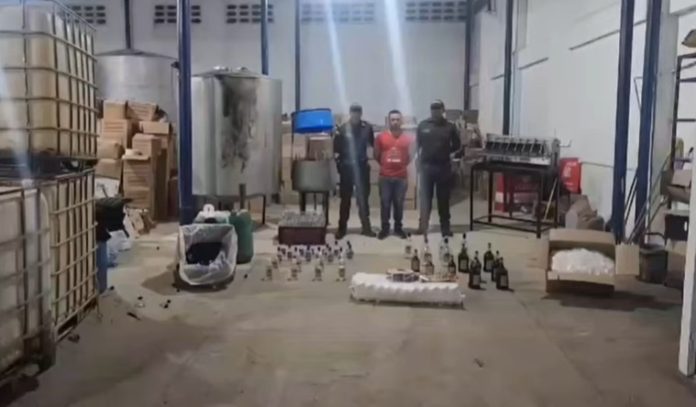 Durante la inspección en una bodega, se hallaron tanques de almacenamiento, máquinas de embotellado y otros insumos utilizados en la producción ilegal de bebidas alcohólicas.