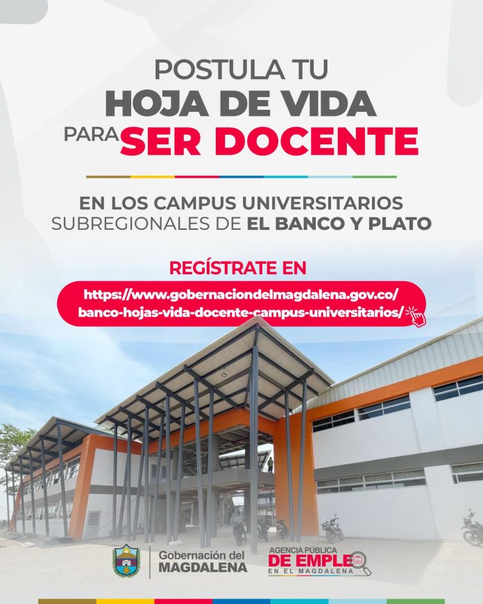 La Gobernación del Magdalena busca profesores para los Campus Universitarios Sub-regionales del Centro y Sur del departamento.