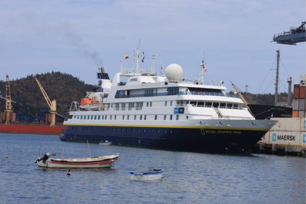 El National Geographic Orion, un exclusivo crucero de expedición diseñado para la exploración, atracó en el puerto de Santa Marta con más de un centenar de turistas a bordo.