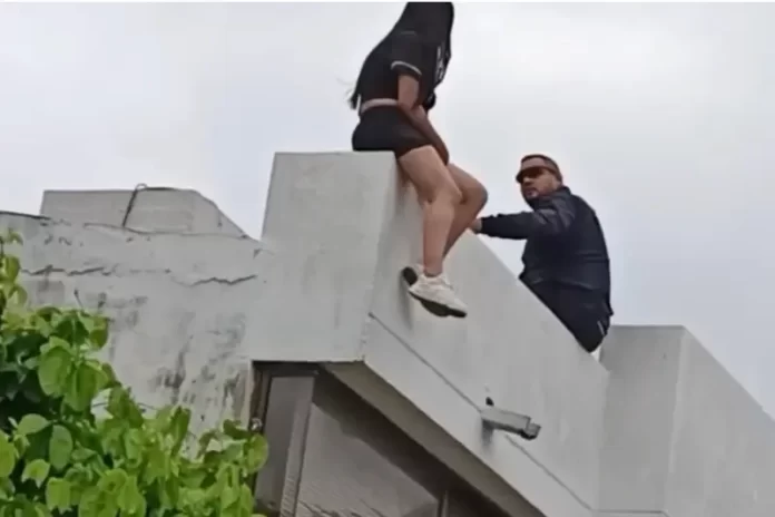 La mañana de este jueves, en el barrio Crespo, una joven visiblemente alterada, se aferraba al borde de la vida y del techo de un edificio.