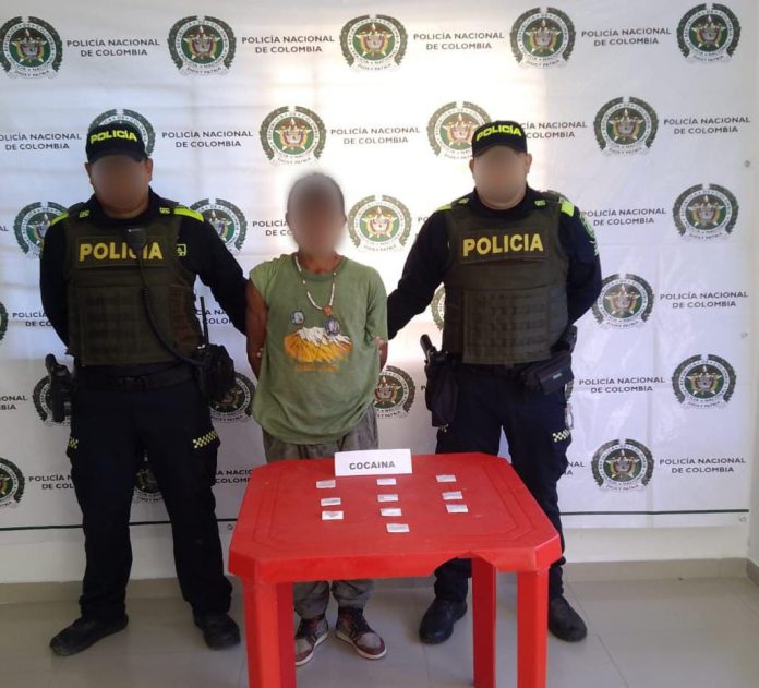 Los hechos se presentaron cuando los uniformados observaron a un hombre que, al notar la presencia policial, adoptó una actitud sospechosa. Al ser abordado y sometido a un registro personal, le fue hallada en su mano derecha una bolsa color café que contenía una sustancia pulverulenta, identificada como base de coca, con un peso aproximado de 3.103 gramos.