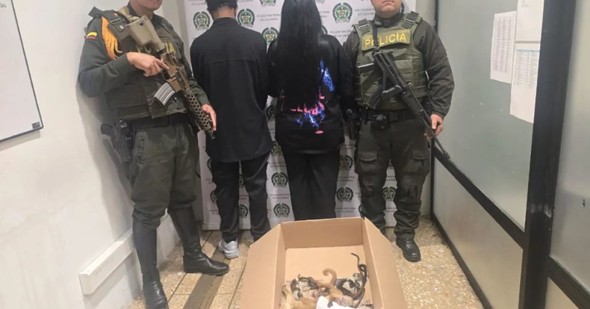 Una pareja de extranjeros fue detenida en el aeropuerto Internacional José María Córdova, de Medellín, por presuntamente sedar y ocultar en sus partes íntimas a seis primates recién nacidos con el fin de traficar ilegalmente con ellos hasta República Dominicana, informaron este sábado autoridades ambientales.