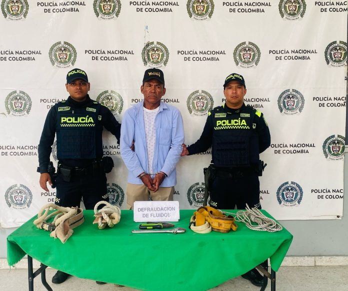 Gracias a la oportuna reacción de dos patrulleros de la Policía Nacional, en zona rural de Piojó, Atlántico, se logró la captura en flagrancia de un sujeto que se encontraba realizando una reconexión ilegal a un parque acuático.