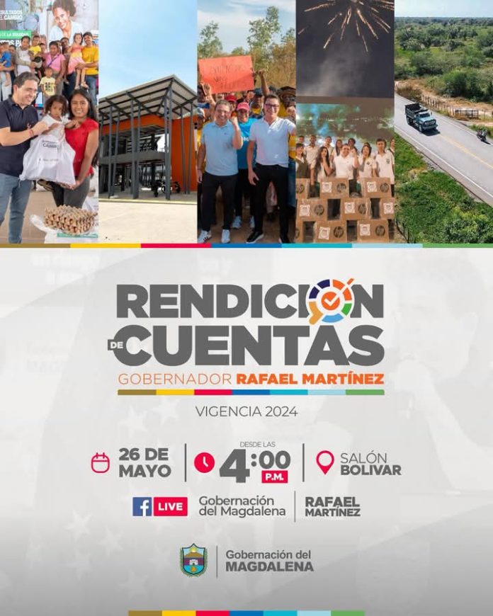 Este lues 26 de mayo, a partir de las 4:00 p. m., el gobernador del Magdalena, Rafael Martínez, presentará su rendición de cuentas 2024 ante la ciudadanía, en un ejercicio de transparencia y participación democrática.