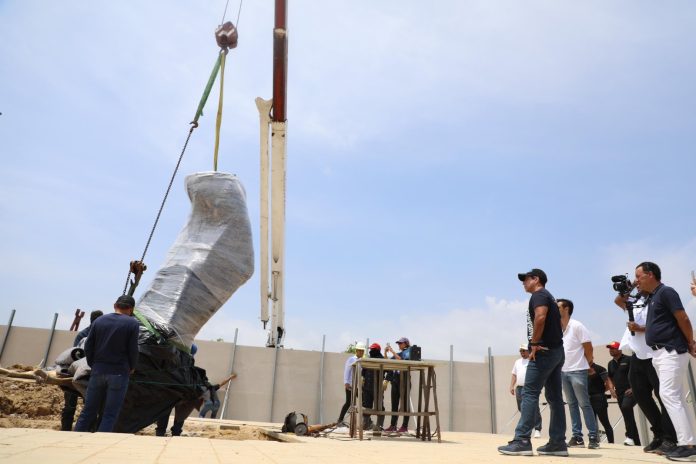 La estatua, elaborada en bronce por el maestro escultor Yino Márquez, alcanza los 7.30 metros de altura y pesa unas 6 toneladas, convirtiéndose en una de las piezas artísticas más llamativas del lugar.