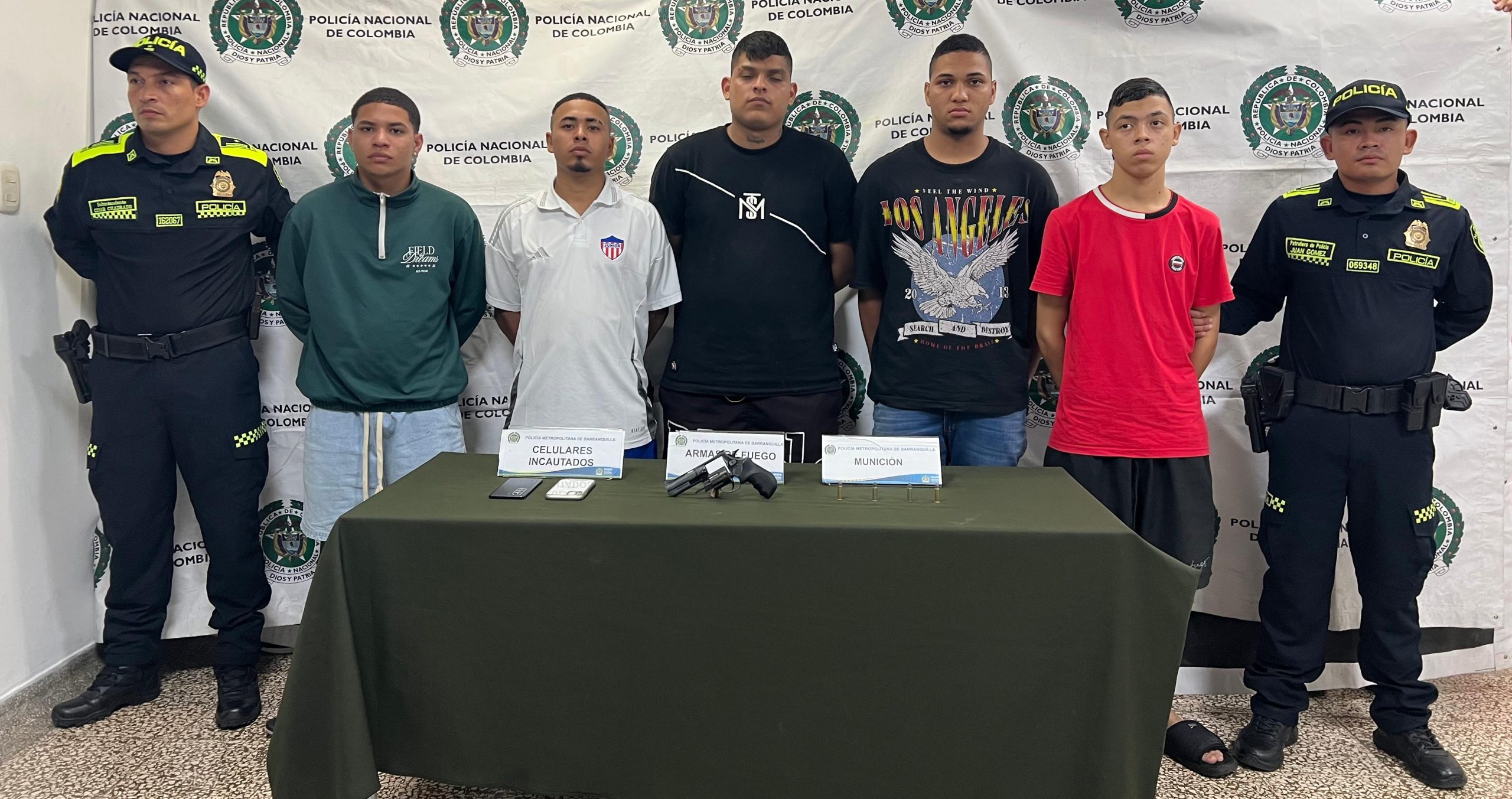 La Seccional de Investigación Criminal de la Policía Metropolitana de Barranquilla logró la captura en flagrancia de cinco individuos por el delito de fabricación, tráfico y porte ilegal de armas de fuego y municiones. El operativo se llevó a cabo en el barrio La Concepción, al norte de la ciudad, en el momento en que los capturados, al parecer, se preparaban para cometer un hurto en un establecimiento comercial.