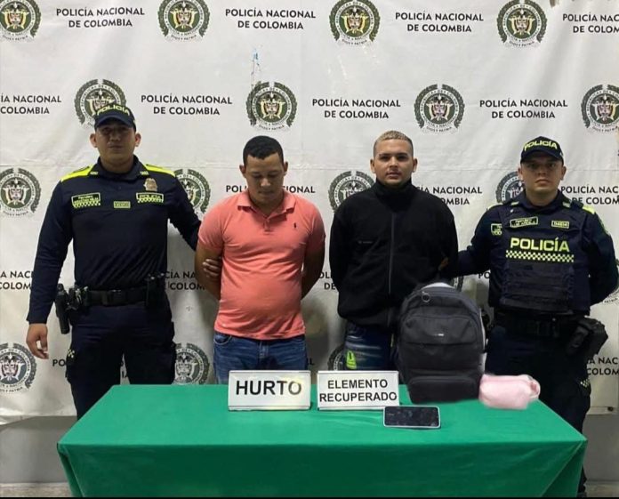 Dos hombres fueron capturados en flagrancia por la Policía luego de ser señalados por víctimas y testigos como responsables de un robo ocurrido minutos antes en inmediaciones de la glorieta del barrio Ciudad del Parque, en Barranquilla.