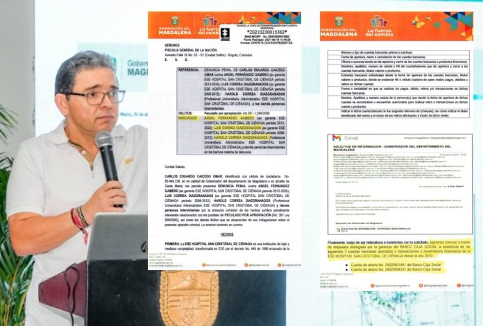 Martínez afirma que el odio del Alcalde se debe a que Carlos Caicedo, exgobernador del Magdalena, denunció por corrupción ante la Fiscalía al hermano del Alcalde, Ángel Fernández, exgerente del Hospital San Cristóbal de Ciénaga.
