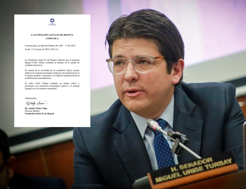 Según el comunicado emitido por el centro asistencial, el equipo médico tratante reportó una reducción en el edema cerebral, uno de los síntomas que más preocupaban desde que Uribe fue ingresado de urgencia tras sufrir una descompensación neurológica cuya causa aún está en evaluación especializada.