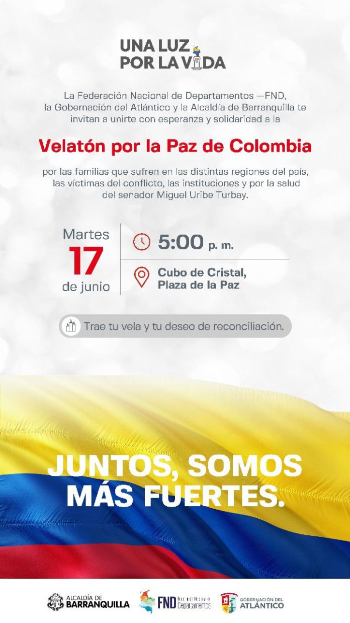 La Federación Nacional de Departamento – FND, la Gobernación del Atlántico y la Alcaldía de Barranquilla te invitan a unirte con esperanza y solidaridad a la Velatón por la Paz de Colombia.