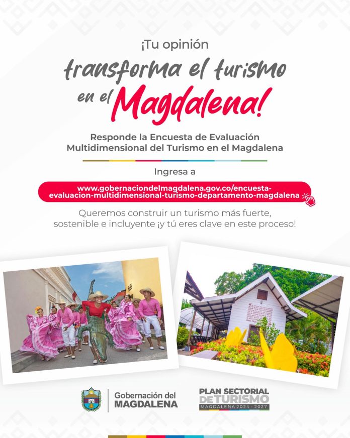 La encuesta, disponible a través del portal web oficial www.gobernaciondelmagdalena.gov.co, busca recoger información valiosa que contribuya a la formulación del Plan Sectorial de Turismo, una política que guiará las acciones, inversiones y proyectos del sector en los próximos años.