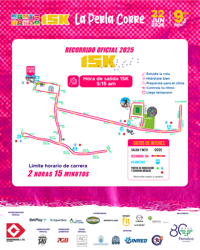 Este domingo 22 de junio, Santa Marta será nuevamente escenario de la novena edición de la carrera Santa Marta 15K “La Perla Corre”, un evento organizado por Fenalco Santa Marta desde 2003, que busca fomentar el deporte y los hábitos de vida saludables entre los ciudadanos.