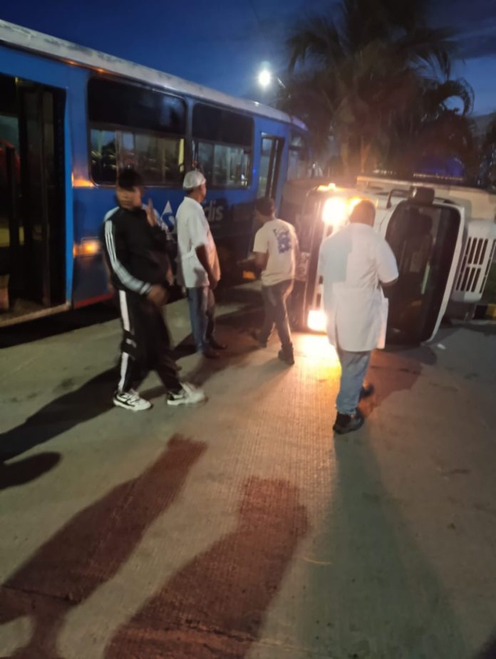 El siniestro involucró a dos vehículos: un bus de servicio público afiliado a la empresa Sodis y un vehículo de carga tipo furgón.