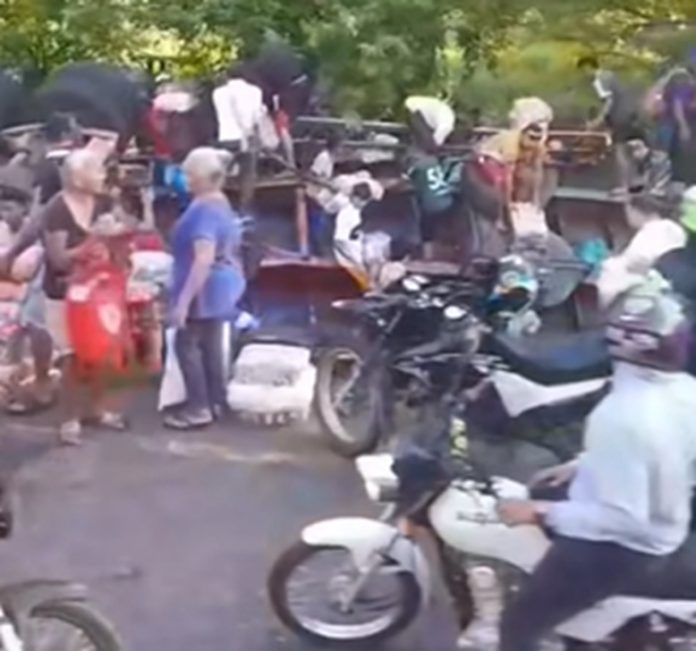 Videos difundidos en redes sociales muestran a habitantes de la zona corriendo entre los bultos regados en la vía, mientras otros utilizan motocicletas y carretillas para transportar el alimento saqueado.