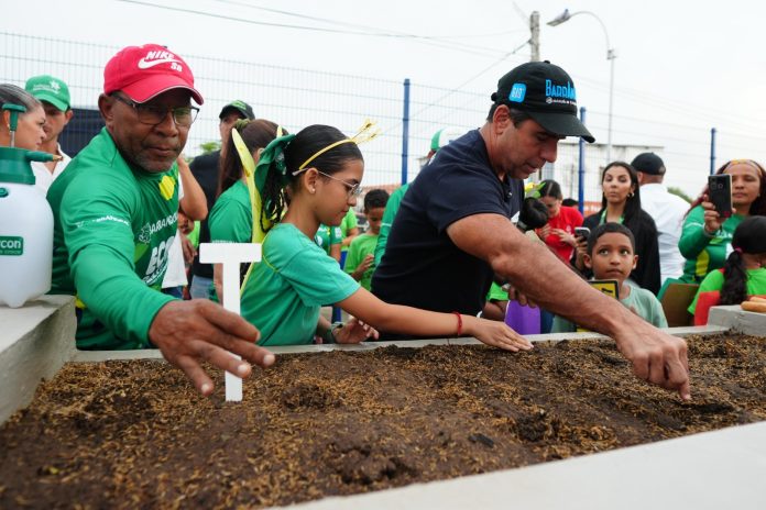 Durante el evento, el alcalde y un grupo de niños del barrio realizaron una siembra simbólica de semillas. Este acto representa el compromiso de las nuevas generaciones con la sostenibilidad urbana y el cuidado del medioambiente.