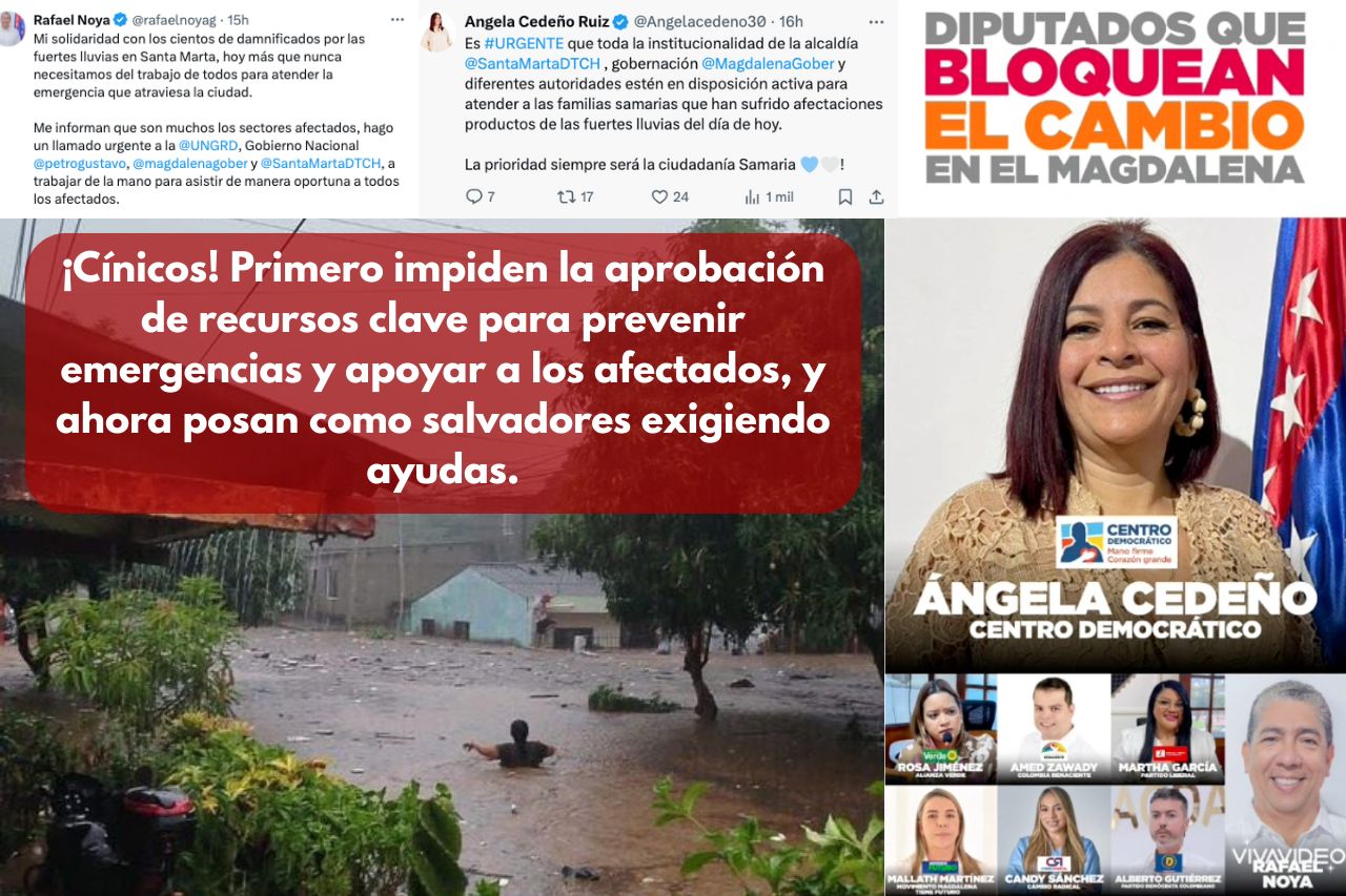En un departamento tan golpeado por la naturaleza como el Magdalena, donde cada temporada de lluvias amenaza con poner en jaque la vida de miles, el manejo político del riesgo no puede ser un asunto de cálculo electoral. Sin embargo, eso es precisamente lo que ha ocurrido en la Asamblea Departamental, donde diputados como Ángela Cedeño y Rafael Noya —entre otros— han hecho gala de una incongruencia que raya en el cinismo: bloquearon recursos esenciales para prevenir emergencias, y ahora, sin sonrojarse, aparecen en redes sociales clamando “ayuda urgente” para las comunidades que ellos mismos dejaron expuestas.