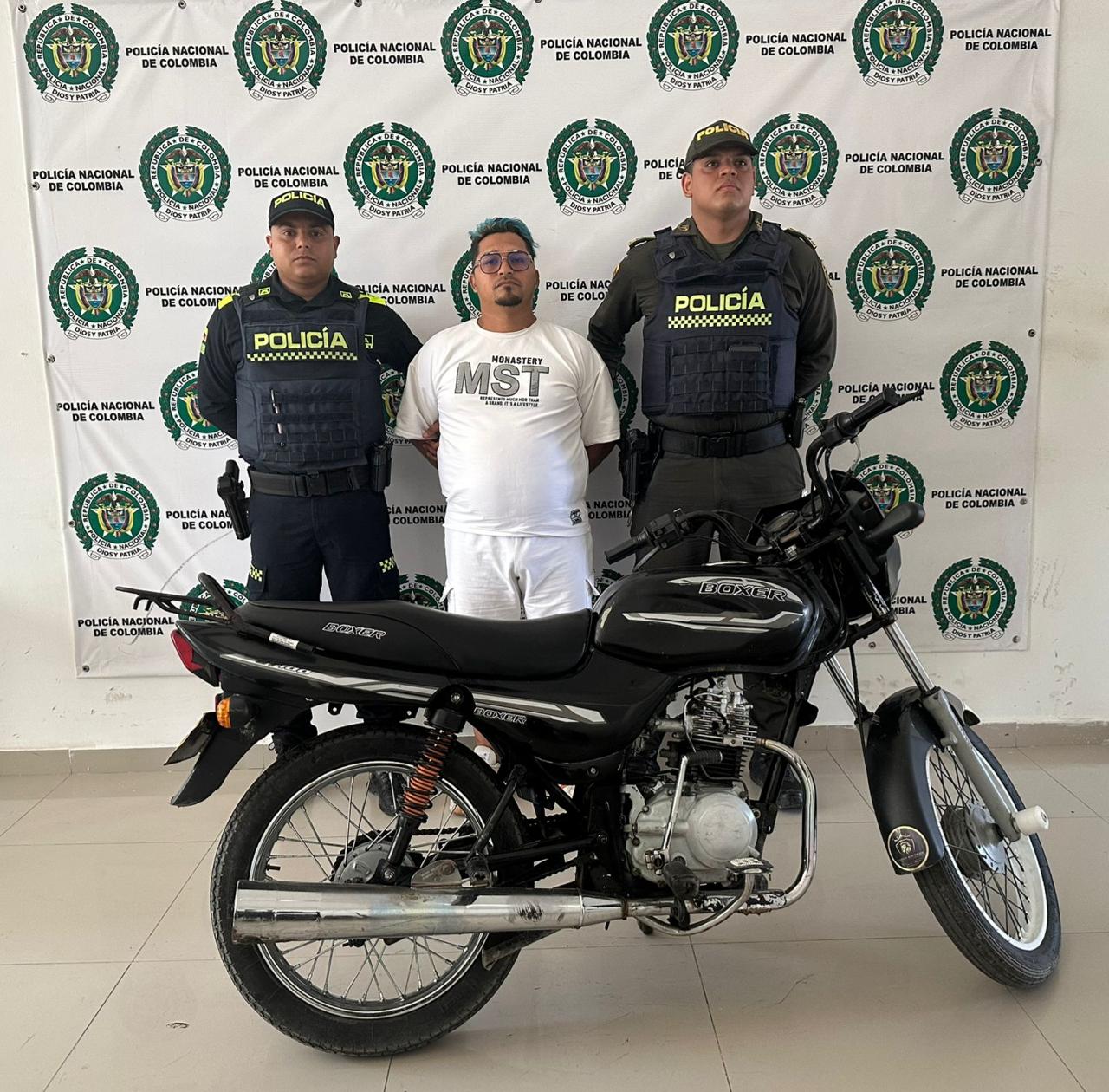 Riohacha, La Guajira. En desarrollo de planes de control y prevención adelantados por unidades de la Policía Nacional, fue capturado un ciudadano que se movilizaba en una moto con requerimiento judicial.