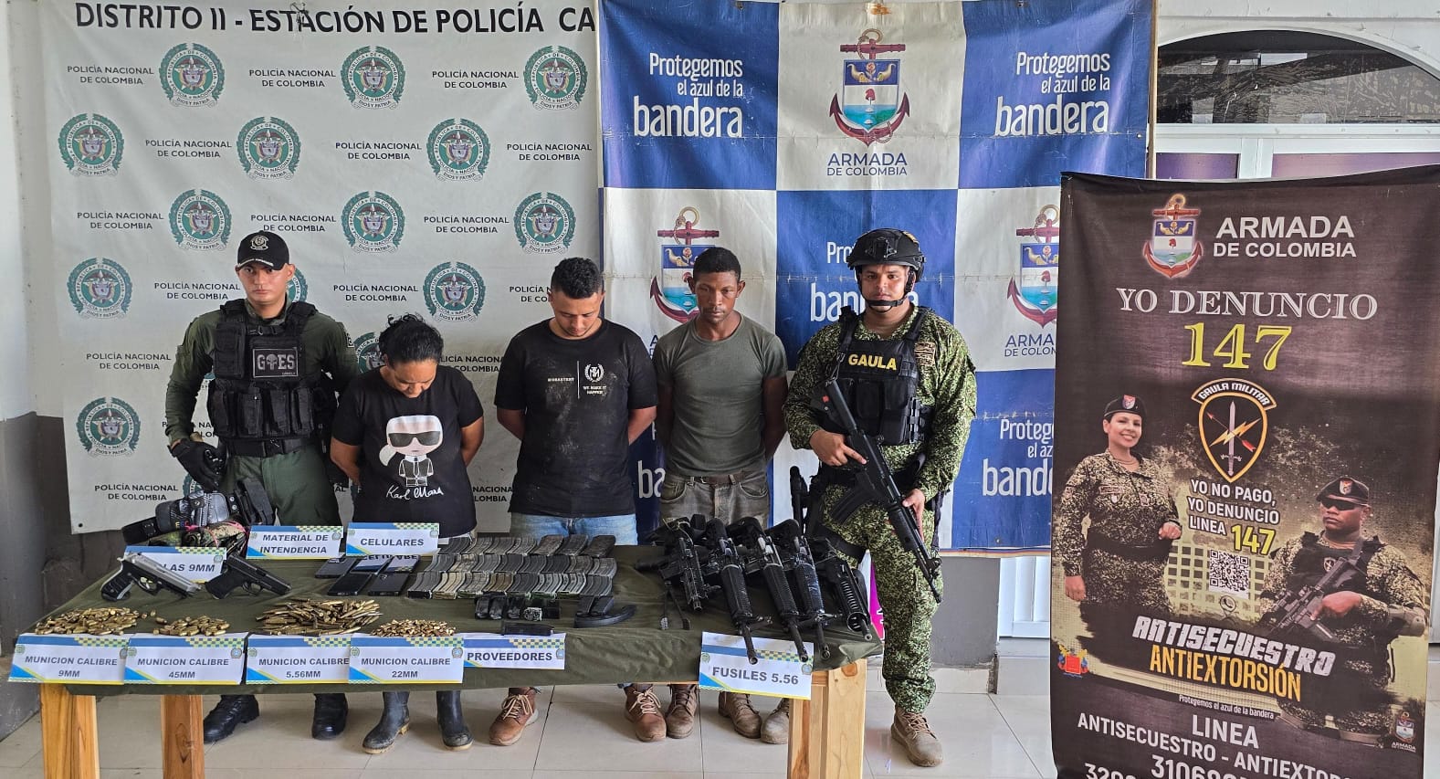 En una operación coordinada entre la Armada de Colombia y la Policía Nacional, las autoridades capturaron en flagrancia a tres presuntos miembros del Clan del Golfo durante un allanamiento en Macayepo, zona rural de El Carmen de Bolívar.