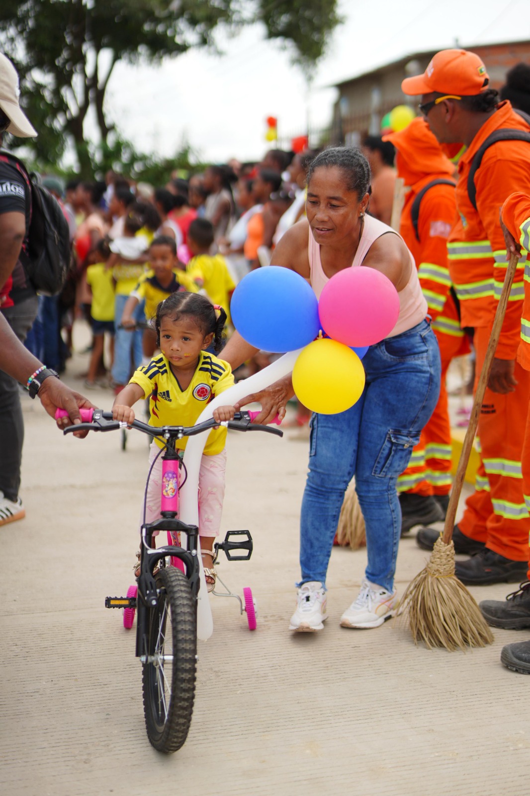 Las buenas noticias para la comunidad del Callejón Carrillo, más allá de su calle nueva, también llegaron para los niños y niñas. El alcalde Mayor, Dumek Turbay Paz, hizo entrega de 70 bicicletas nuevas con las que los menores ahora podrán disfrutar de la recreación y el sano esparcimiento en el ambiente digno que merecen. Lo harán sin barro, polvorín ni piedras amontonadas que se les atraviesen a su paso.