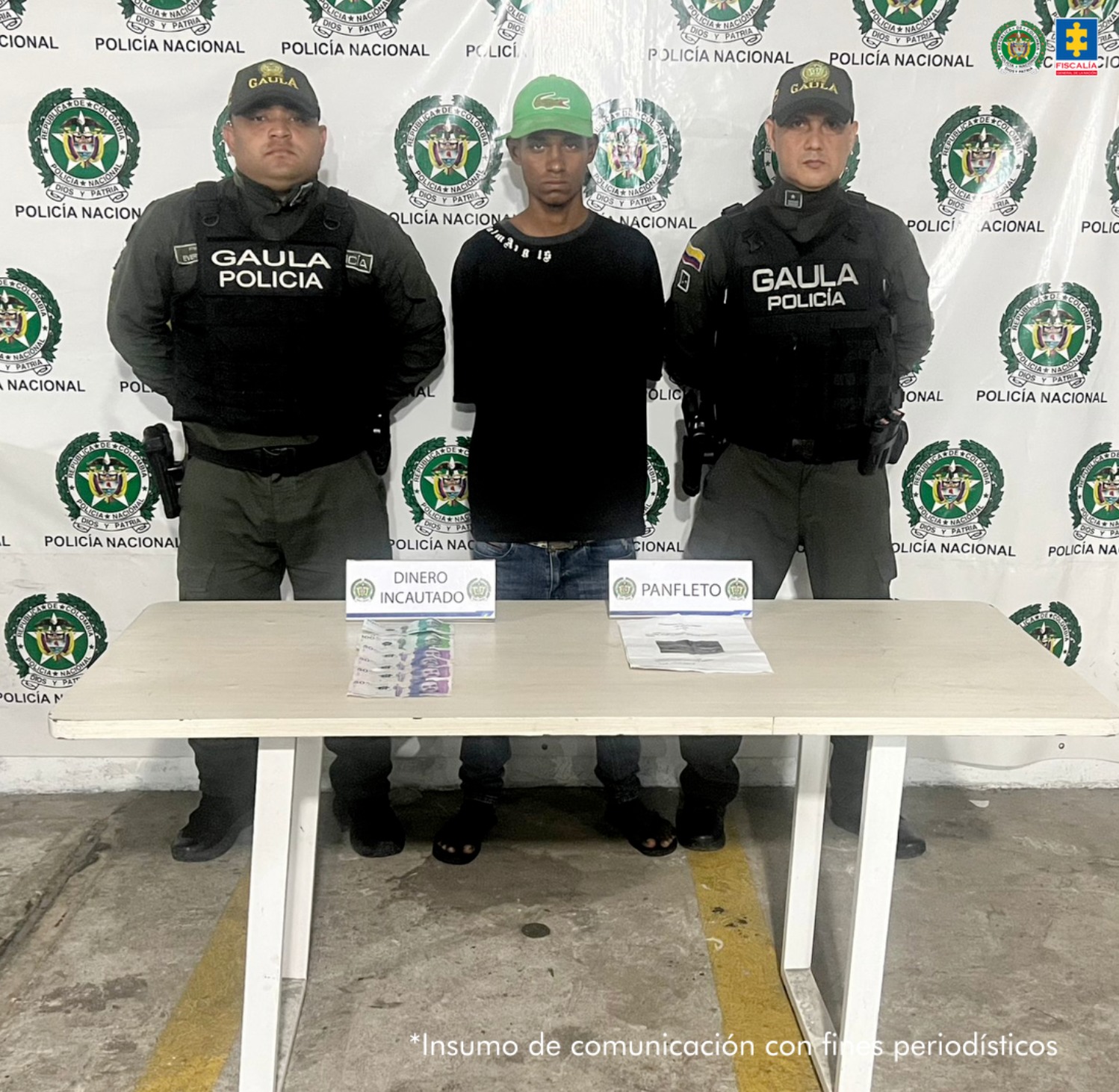 Un juez envió a la cárcel a Carlos Andrés Cervantes Polo, capturado en flagrancia por el Gaula de la Policía cuando intentaba cobrar una extorsión a un comerciante del barrio Eduardo Santos, en el corregimiento de La Playa.