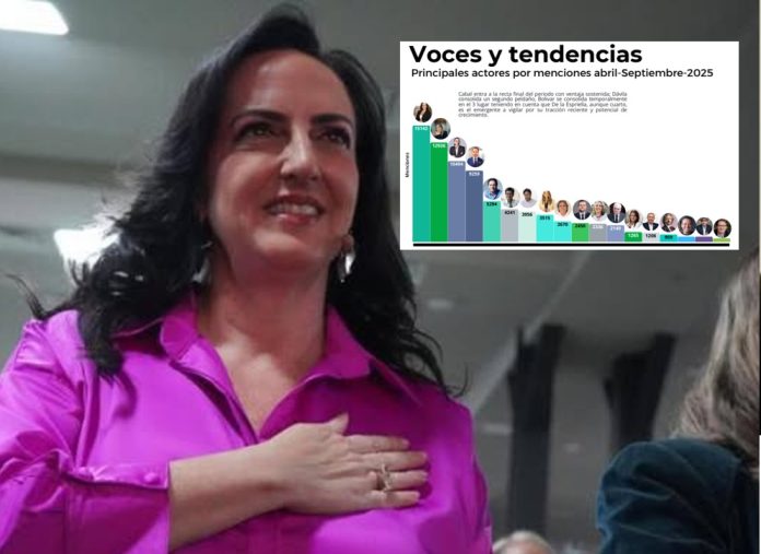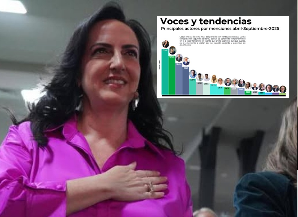 Según el informe, Cabal se ubica consistentemente en la cima de la visibilidad digital, mientras que otros aspirantes muestran fluctuaciones en su presencia en redes sociales. El estudio destaca que el 77% de las menciones hacia la senadora son orgánicas, lo que evidencia un interés genuino de la comunidad activa en las plataformas digitales.
