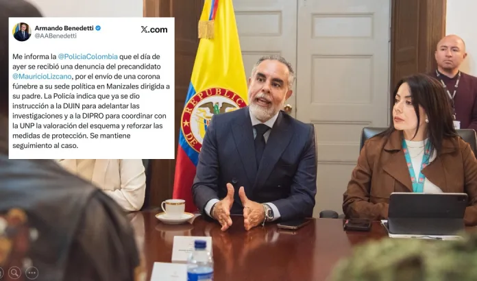 El ministro del Interior, Armando Benedetti, informó a través de su cuenta de X que se han activado medidas de seguridad tras la denuncia presentada por el precandidato presidencial Mauricio Lizcano, quien reportó el envío de una corona fúnebre dirigida a su padre en la sede política de Manizales.