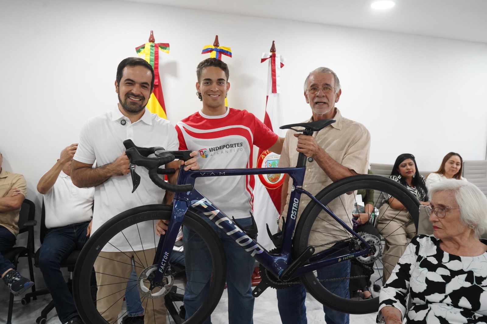 *Gobernador Eduardo Verano entregó al deportista atlanticense una bicicleta de fibra de carbono diseñada bajo sus propias especificaciones valorada en $52 millones de cara a su preparación olímpica para Los Ángeles 2028.