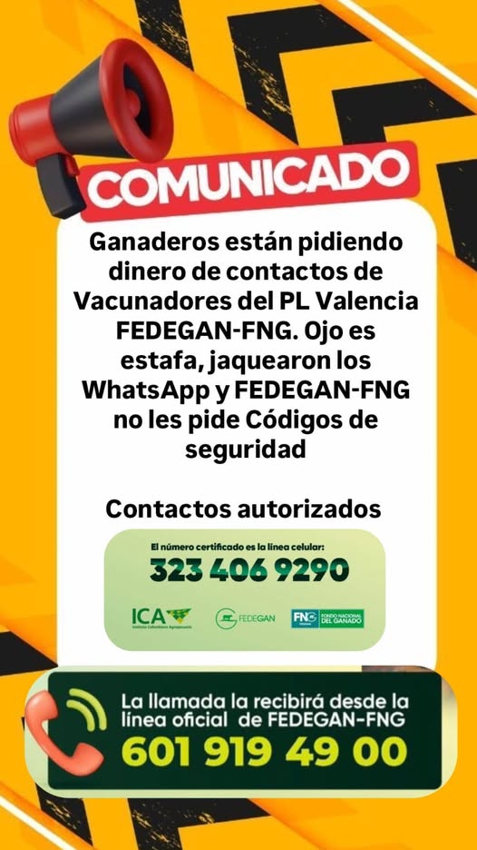 Desde Fedegán y el PL Valencia informaron que no se están solicitando códigos para reuniones, encuestas o confirmaciones por WhatsApp.