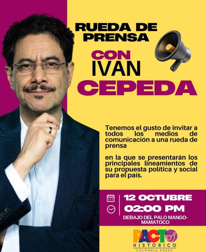El precandidato a la consulta presidencial del Pacto Histórico, Iván Cepeda, visitará Santa Marta este domingo 12 de octubre a las 2:00 p.m., donde ofrecerá una rueda de prensa con los medios de comunicación y participará en un gran encuentro con las comunidades del Magdalena, que llegarán desde distintos municipios del departamento para escuchar sus propuestas políticas y sociales.