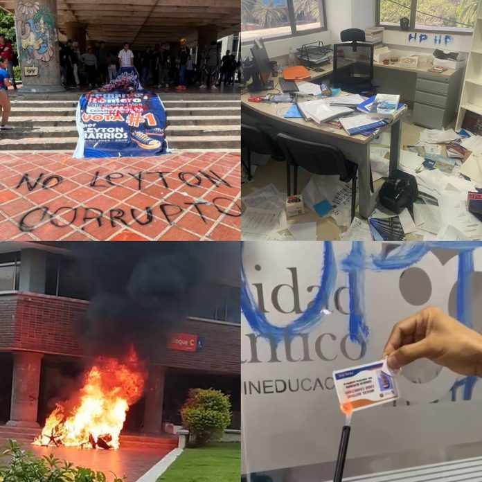 Estudiantes protagonizaron una jornada de manifestaciones y actos vandálicos en rechazo a la posible designación de Leyton Barrios como rector. *Denuncian irregularidades en el proceso de elección y exigen transparencia y respeto por la autonomía universitaria.