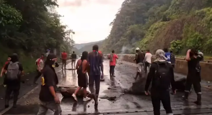Persiste el bloqueo en la vía a Buenaventura en los sectores de La Víbora y Cocomar, donde comunidades indígenas, afro y campesinos impiden el paso vehículos, generando tensiones en estos sectores con los conductores del transporte de carga y pasajeros que intentan pasar las barricadas.