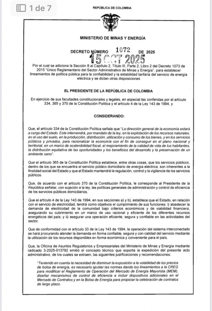 De acuerdo con el Ministerio, el decreto busca dar estabilidad al mercado eléctrico, proteger el bolsillo de los usuarios y garantizar la sostenibilidad financiera del sistema energético nacional.