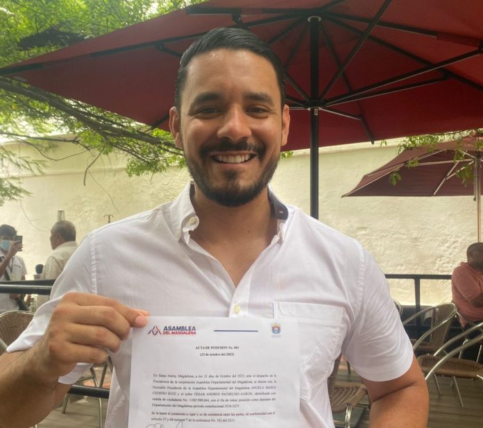 El panorama político en el Magdalena se reconfiguró oficialmente tras la toma de posesión del diputado César Andrés Pacheco Aarón. Cumpliendo con la citación formal de la Asamblea Departamental, Pacheco Aarón asumió su curul para completar el período constitucional 2024-2027. El acto se llevó a cabo en la sede administrativa de la Corporación, consolidando su rol como miembro activo y representante de los intereses ciudadanos en este cuerpo colegiado.