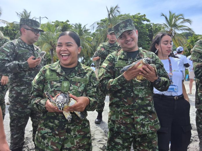 En Santa Marta, Magdalena, el Batallón de Infantería N.° 5 General José María Córdova, de la Segunda Brigada, y el Batallón de Acción Integral y Desarrollo N.° 1 se unieron a Petrobras, Universidad Jorge Tadeo Lozano, Mundo Marino y CorpoMagdalena en un emotivo evento para liberar 50 tortugas marinas Carey juveniles, una especie milenaria en peligro crítico de extinción.
