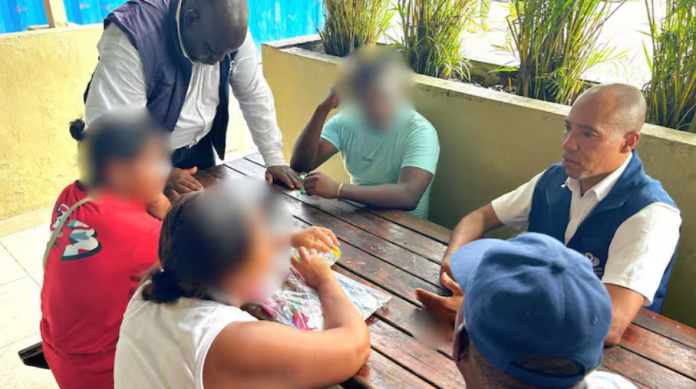 «Al notar la presencia de los uniformados, tres sujetos se lanzaron al agua y emprendieron la huida hacia el casco urbano de Docordó. Mientras tanto, las dos personas restantes pidieron ayuda, argumentando que minutos antes habían sido sacadas de su lugar de residencia por esos tres sujetos y los habían obligado a abordar la embarcación en contra de su voluntad», detalló la Armada en un comunicado.