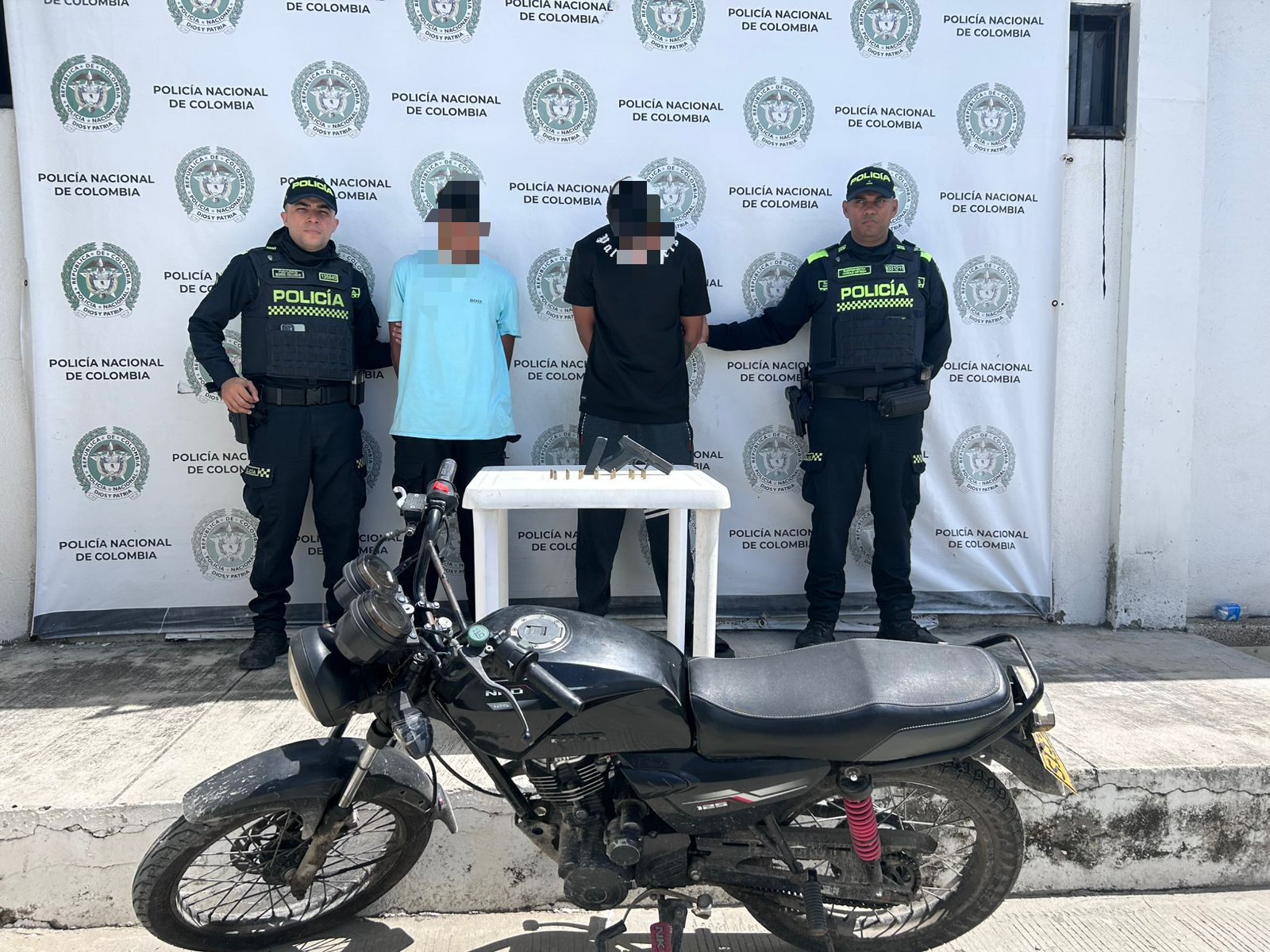En el marco de la operación “Agamenón”, la Policía Nacional capturó en flagrancia a dos presuntos integrantes del Clan del Golfo en Santa Marta por el delito de porte ilegal de armas y municiones. Durante el procedimiento fueron incautados un arma de fuego tipo pistola, munición y otros elementos.