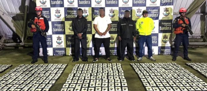 La Armada Nacional incautó 2.8 toneladas de clorhidrato de cocaína y capturó a tres personas que viajaban a bordo de una embarcación en aguas del Pacífico con destino a Centroamérica, informaron este jueves fuentes oficiales.
