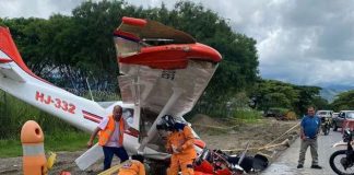 Avión cayó encima de un motociclista que se desplazaba sobre una...